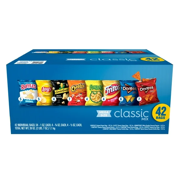• Frito Lay Mega Size Classic Mix includes 42 single serve snack bags